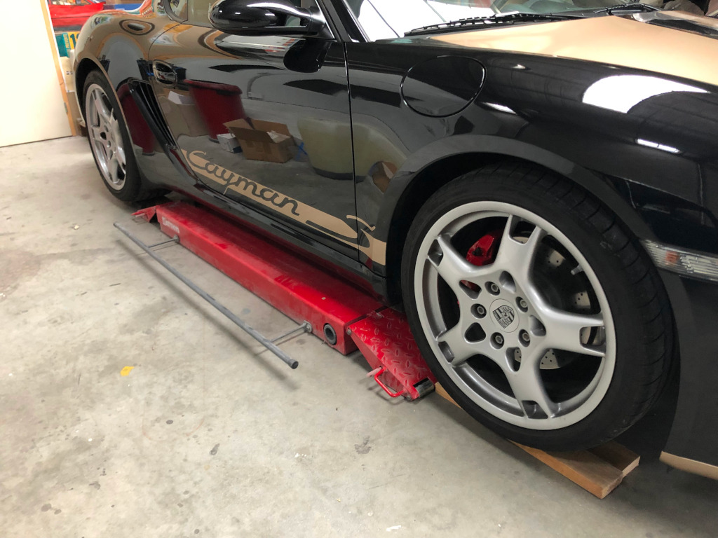 On lève l’auto, on dépose les jantes, et on commence par un bon nettoyage.